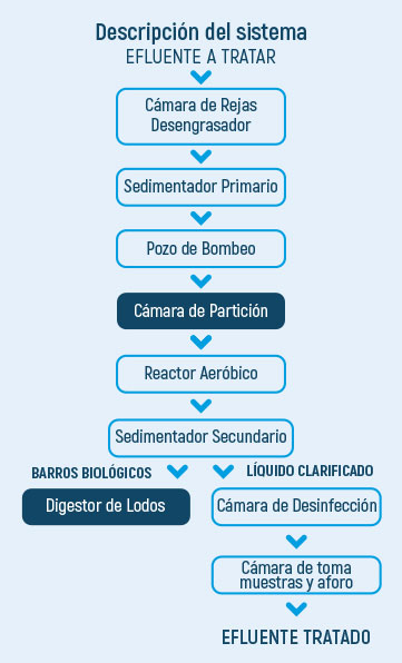 Anteponiendo una cámara de partición, se pueden ir adicionando módulos a medida que aumenta la población a servir. Una vez instalados, pueden entrar o salir de servicio de acuerdo a la necesidad.